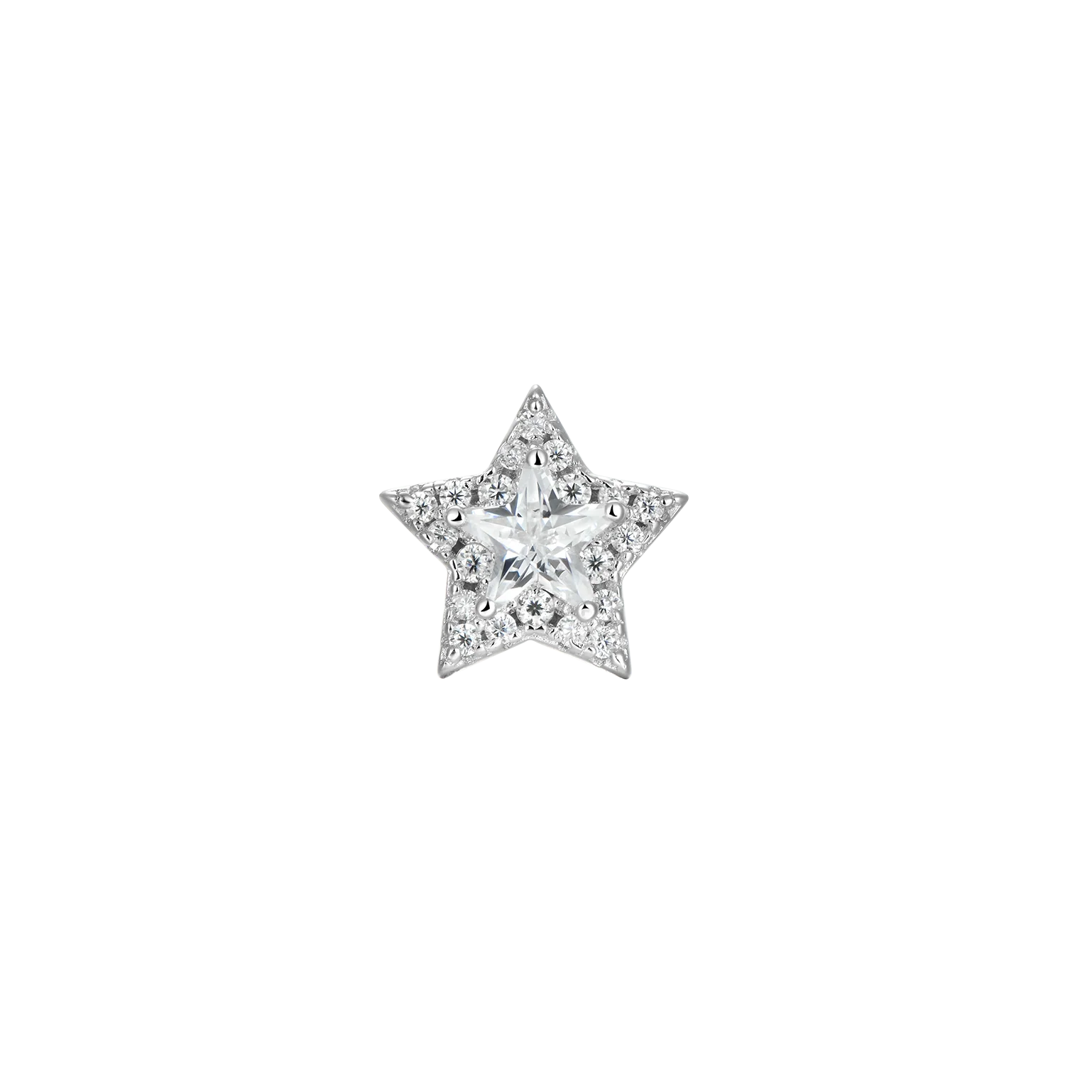 The classic star element is brought to life by a rare star-cut CZ stone encircled by clusters of hand-set moissanite, offering a simple yet head-turning look.