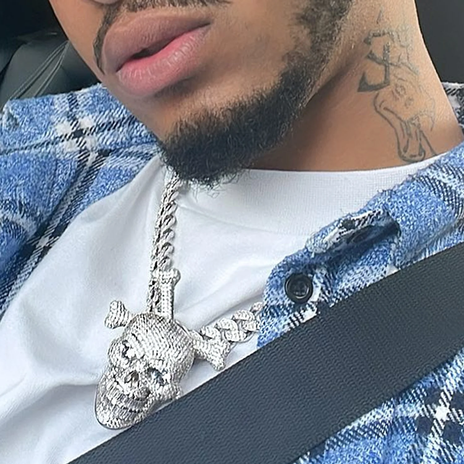 As the symbol of freedom and intrepidity, the Spinning Skull & Crossbones Pendant was crafted with unprecedented details of different sizes of CZ stones. Over the skull's head, two flashing eyes shine with a creepy glow. The crossbones behind is rotatable and shines like no other when spinning. Perfectly fits 15mm Cuban links, the bail is hidden at the back so that it helps display the vivid design. The eye-catching skull can definitely add some punk shine to your outfit. We only live once, just seize the moment and be strong to face death and adversity.